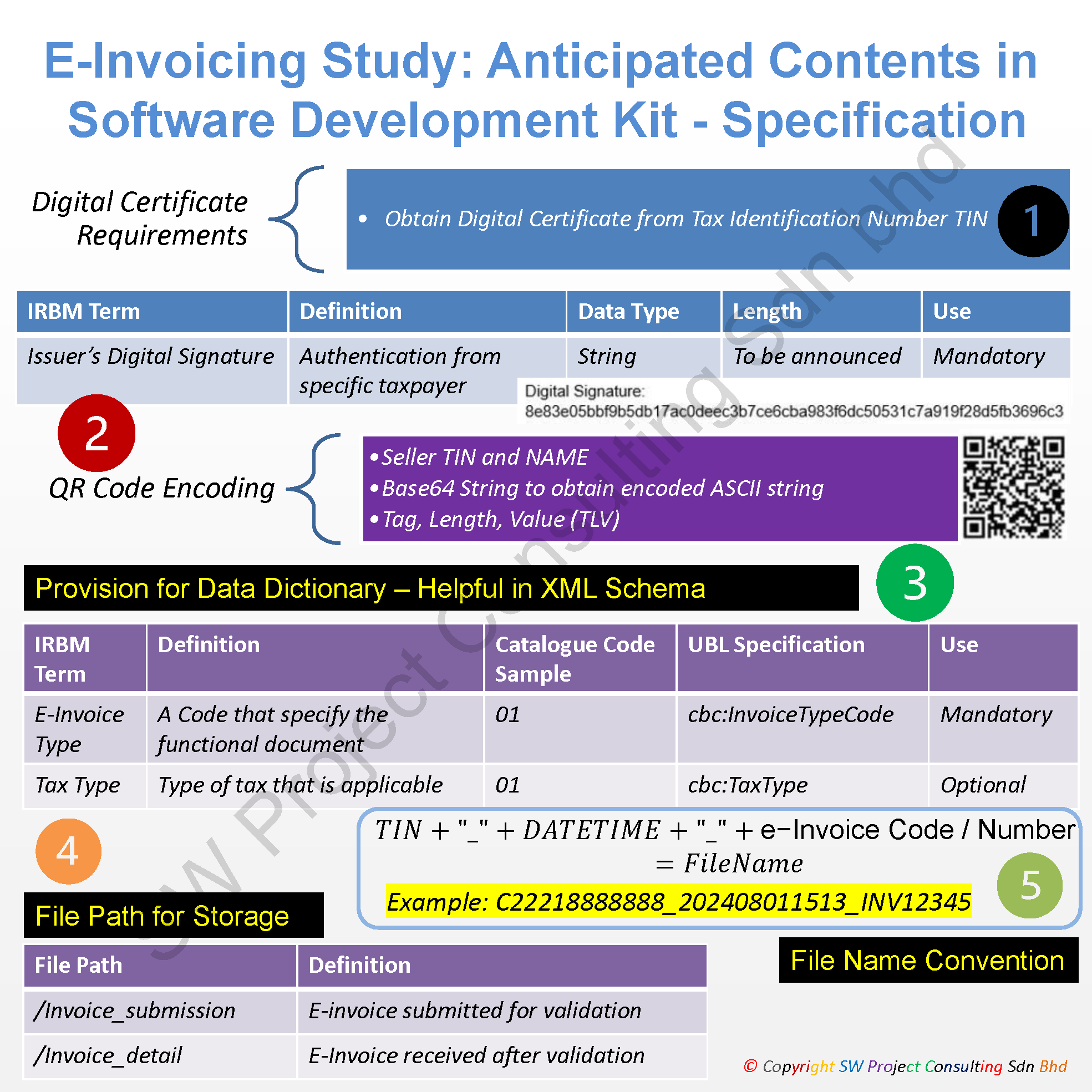 - IRBM announced in the guideline that digital signature is embedded into the e-invoice. Therefore, IRBM shall use Tax Identification Number to create the digital certificate for specific taxpayer as an authentication approach to validate the identity of the taxpayer. The SDK shall indicate a digital signature to be embedded in the e-invoice shall be based on one digital signature or shall use different digital signature that belongs to the same taxpayer for retailing e-invoice.