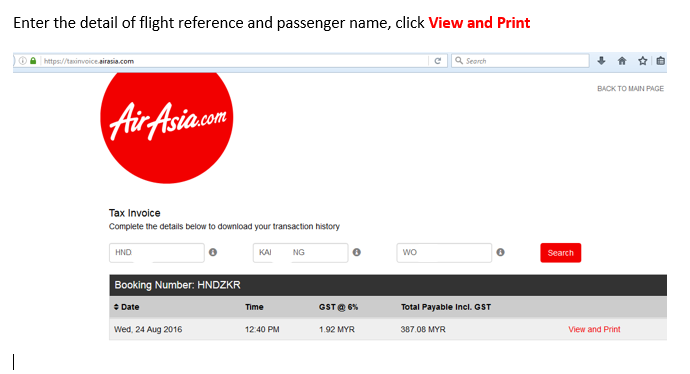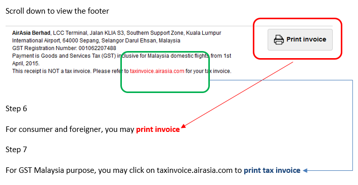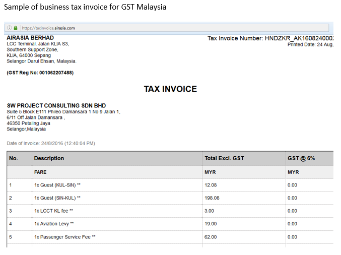 In order to claim input tax credit for GST Malaysia, your Air Asia air ticket must be tax invoice instead of invoice. Air Asia gives the traveller two options to print invoice and/or tax invoice.
