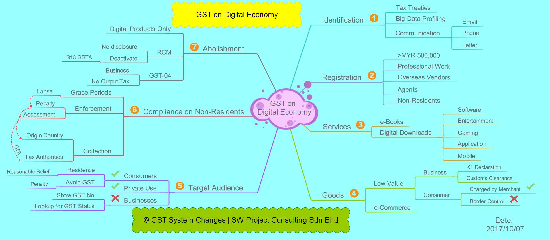 - Definition of Digital Services - It includes all forms of download, ebooks, entertainment related such as movie, songs, gaming, application, mobile and others. Currently GST is unable to track the purchase by consumer who pays to overseas businesses.